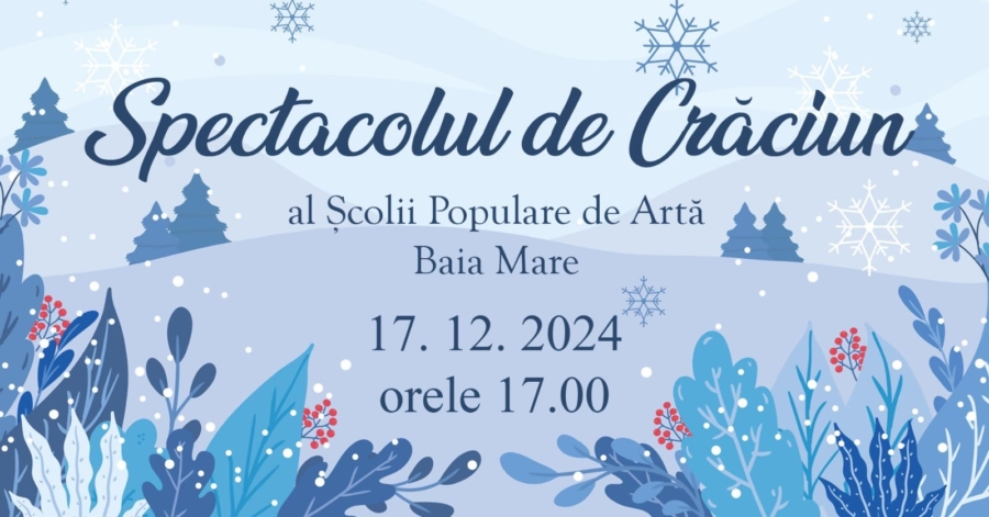 Marți, 17 decembrie, de la ora 17.00, Amfiteatrul „Octavian Buzura” din cadrul Colegiului Național „Gheorghe Șincai” Baia Mare va găzdui spectacolul de Crăciun al Școlii Populare de Artă Baia Mare.