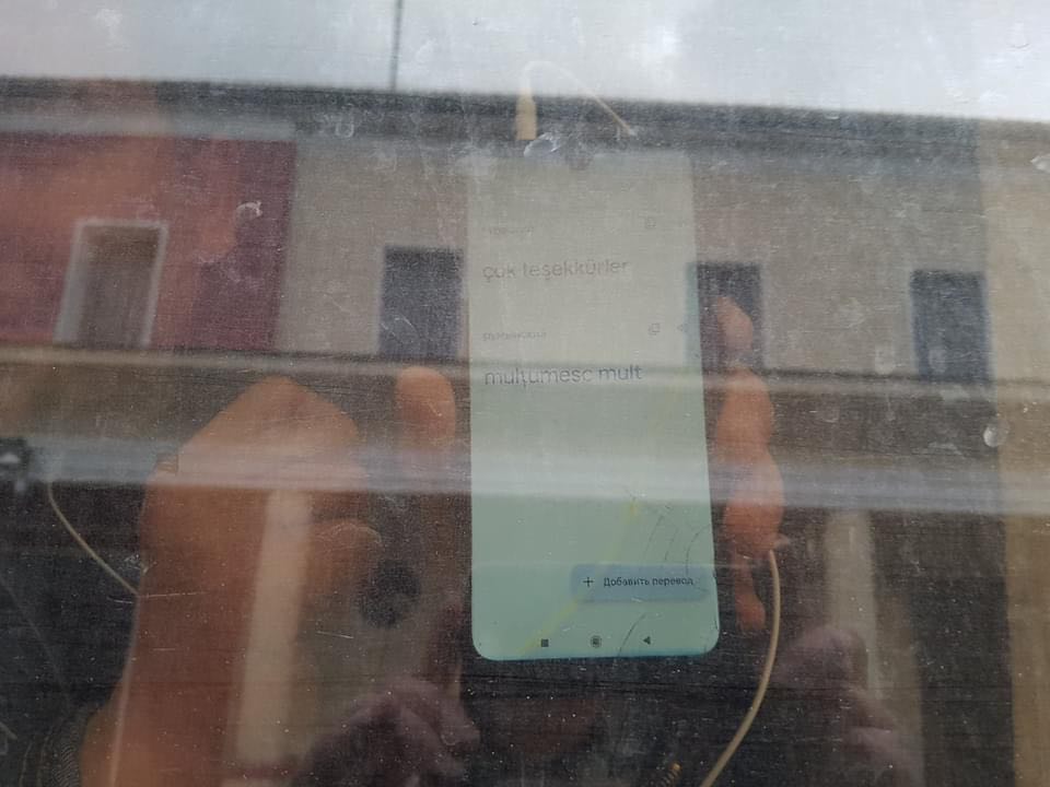 La final, în timp ce erau în tren, unul dintre aceștia a făcut un gest care a emoționat profund. A lipit telefonul de geam, iar pe ecran era un mesaj simplu, scris în turkmenă și tradus cu Google Translate: „Mulțumesc mult!”.