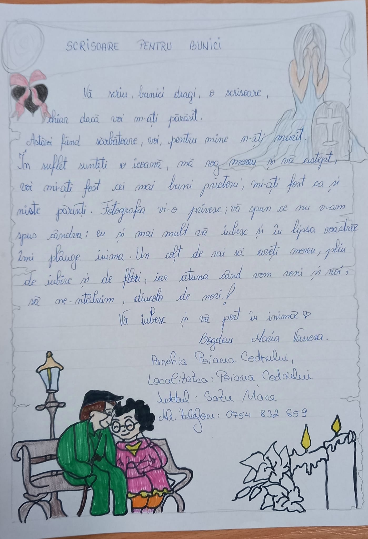 Cu binecuvântarea Preasfințitului Părinte Iustin, Episcopul Maramureșului și Sătmarului, cu ocazia Zilei Internaționale a persoanelor vârstnice – 1 octombrie, în contextul Anului Omagial și a Anului Comemorativ 2024, Departamentul Media-Online din cadrul Sectorului Cultural și Comunicații Media în parteneriat cu Sectorul Teologic-Educațional a lansat Proiectul Eparhial intitulat „Scrisoare către bunicii mei”, activitate dedicată școlarilor și elevilor din eparhia noastră.