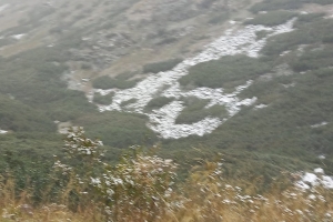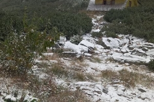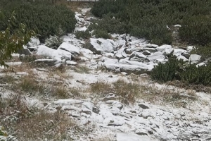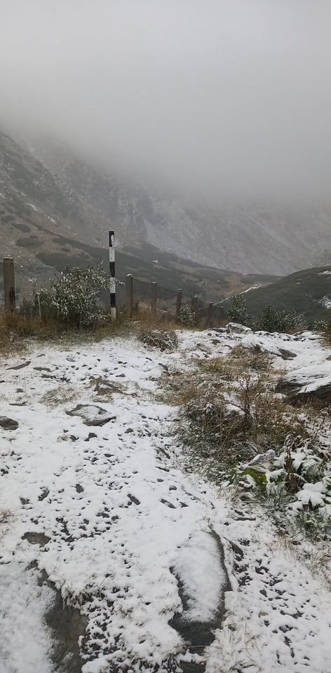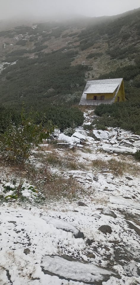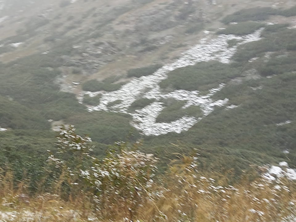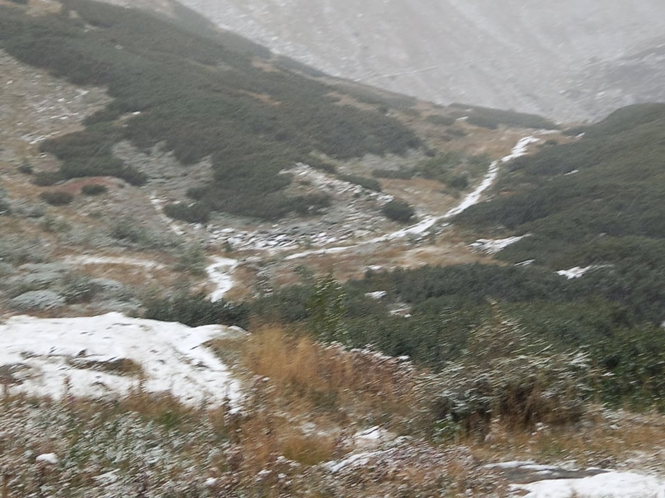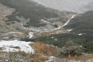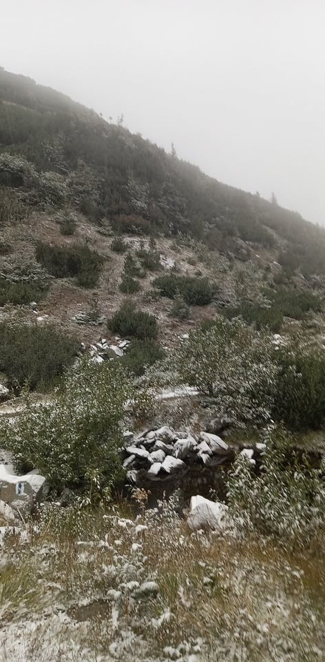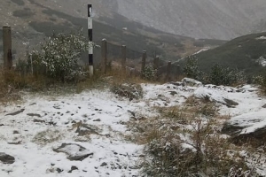 Episod de iarnă repezită! Ninge în aria naturală maramureșeană, astăzi, 22 septembrie! Fabuloasele priveliști sunt surprinse în ținutul Borșa, Munții Rodnei. Ninsorile sunt slabe totuși în prezent.