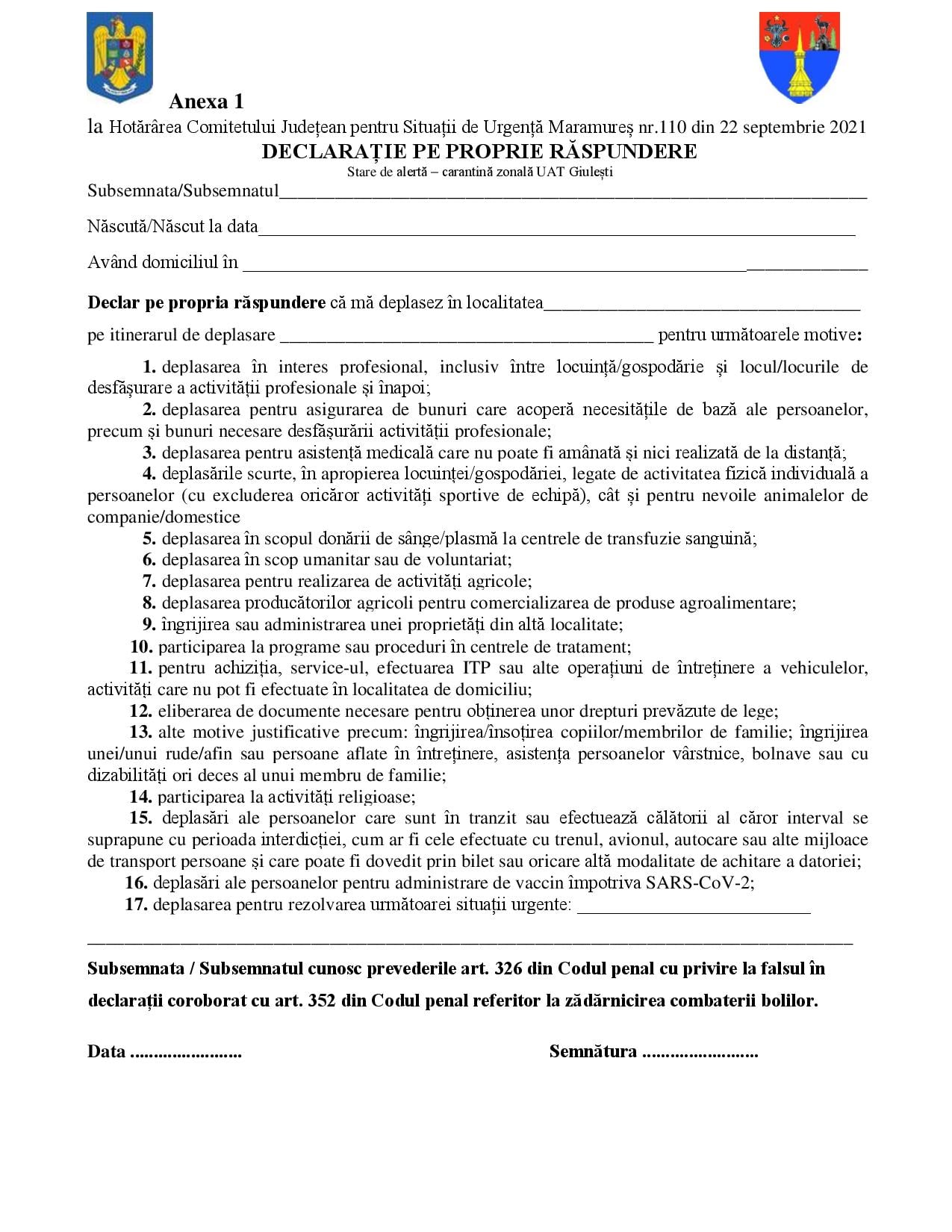 ‼️Declarația pe propria răspundere trebuie să cuprindă numele și prenumele, data nașterii, adresa locuinței/gospodăriei/locului activității profesionale, motivul deplasării conform celor prevăzute la art.4, data completării și semnătura.