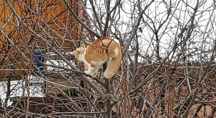 Întâmplare cu final fericit pe strada Păunului din Baia Mare (aproape de bulevardul Republicii), duminică, 21 februarie. O pisică speriată nu s-a mai putut da jos dintr-un copac, având nevoie de sprijinul iubitorilor de animale.