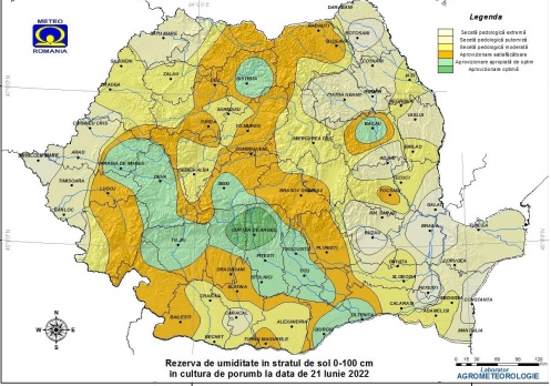 Aprovizionarea cu apă a solului pe adâncimea 0-100 cm, în cultura de porumb, se situează în limite satisfăcătoare, apropiate de optim și izolat optime, în cea mai mare parte a Olteniei și Transilvaniei, local în nordul, vestul, centrul și sudul Munteniei, nordul, nord-vestul, izolat centrul și sud-vestul Moldovei, nord-estul Banatului și sud-estul Crișanei. Deficite de umiditate în sol (secetă pedologică moderată, puternică și extremă) se înregistrează în Dobrogea și Maramureș, pe suprafețe extinse din Moldova, Banat și Crișana, local în nordul, estul și sudul Munteniei, sudul, centrul și estul Olteniei, izolat nord-vestul, centrul, sudul și estul Transilvaniei. Așadar Maramureșul se încadrează în ambele situații ca figurând pe lista ariilor din țara noastră în care se observă mai bine arșița verii și seceta aferentă.