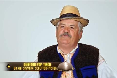 Acesta, ajutat fiind de ucenicii săi, au realizat cruci gravate și colorate, ce prezintă versuri cu și despre persoana răposată. Sunt surprinse fie realizările acesteia, fie obiceiurile rele pe care le-a avut în timpul vieții. Cimitirul Vesel de la Săpânța este recunoscut pentru unicitate și originalitate, fiind unul dintre obiectivele turistice de top din județul Maramureș. Și în timp ce a gătit mămăligă cu brânză, cârnați și smântână, Dumitrescu Pop Tincu a povestit cine este și cu ce se ocupă!”, a notat site-ul oficial al emisiunii. Am adăuga aici că artistul maramureșean le-a oferit și câte un pahar de horincă celor trei chefi.