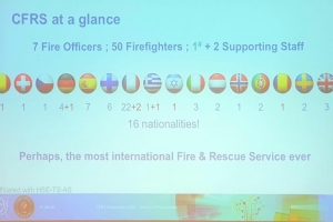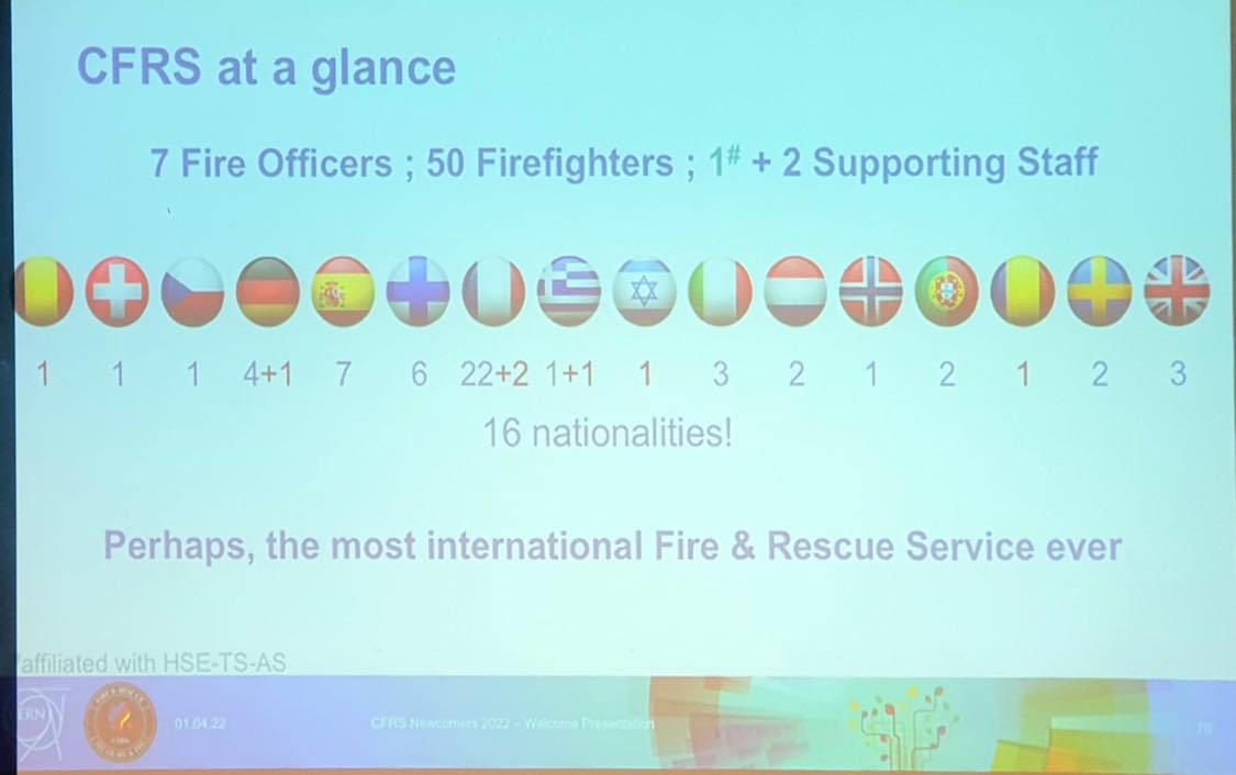 „Dacă-mi permiteți, aș vrea să vă spun totodată câteva curiozități despre CERN, pe care le-am aflat de când sunt aici. Ca să vă faceți o idee despre proporțiile celui mai mare laborator din lume care vizează cercetarea particulelor, și pe care noi pompierii trebuie să îl protejăm, acesta se întinde pe 625 ha, are 700 de clădiri, are 52 km de tuneluri, din care acceleratorul de particule are 27 km. În acest accelerator este cel mai rece loc cunoscut în univers, cu o temperatură constantă de -271°C. În cadrul organizației sunt angrenați în jur de 17.000 de specialiști, unii dintre ei fiind printre cele mai luminate minți ale lumii în domeniul fizicii, laureați ai premiului Nobel, iar scopul comun fiind aflarea răspunsurilor întrebărilor fundamentale ale omenirii: Care este originea universului? Din ce este compus și cum funcționează acesta? De la înființarea CERN, în 1954 și până în prezent, s-au făcut descoperiri remarcabile în domeniul fizicii particulelor și nu numai. CERN este singurul loc din lume unde se poate fabrica antimaterie, natura acesteia fiind unul din cele mai mari mistere ale fizicii moderne. Pentru fabricarea unui gram de antimaterie ar trebui să se lucreze la CERN, cu tehnica din prezent, poate milioane de ani. Însă un gram de materie combinat cu un gram de antimaterie pot genera o energie colosală, echivalentă exploziei tuturor bombelor atomice de pe planetă. Și totuși în univers se presupune că ar putea coexista și fără o asemenea reacție. De menționat este și faptul că prima pagină WWW (World Wide Web) a fost creată în 1989 aici, pentru CERN. Aplicabilitatea și importanța acestei invenții o știm cu toții astăzi”, mai arată Ionuț Ahrițculesei.