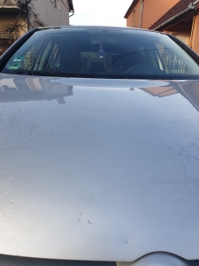 În jurul orei 12.00, fiind la volan, am încetinit la trecerea de pietoni de pe strada Mihai Eminescu, mai jos de piață. Aceeași femeie, pe care noi o știm doar din vedere și cu care nu am avut nicio tangență niciodată, venea pe mijlocul drumului cu un bolovan în mână. Văzându-mă acordând prioritate la trecerea de pietoni, a aruncat pe capotă bolovanul. Nu știu cât de bine se vede în imagine dar capota este îndoită. Am sunat la 112 dar știind că nu se pune probleme de vreo despăgubire, ci pentru că e un pericol public. Vă dați seama că putea fi oricine în locul meu. Sau acel bolovan putea fi aruncat în capul unui copil. S-a nimerit să fiu eu cel în care a aruncat, dar la fel de bine putea fi oricine altcineva. Nu cred că are ceva cu noi pentru că sunt sigur că nici nu știa că urlase la soția mea cu câteva ore mai devreme. Ideea este că are clar unele probleme și ar trebui să beneficieze de ajutor. Eu mă aflam în timpul serviciului deci nu am putut să stau până la sosirea polițiștilor, dar cred că un astfel de caz iese în evidență și cineva trebuie să o cunoască, pentru ca ea să fie identificată și ajutată pentru a preveni vreun incident mult mai grav decât acesta. Mă gândesc că circulă prin tot orașul”, arată pentru DirectMM.ro Andrei B.