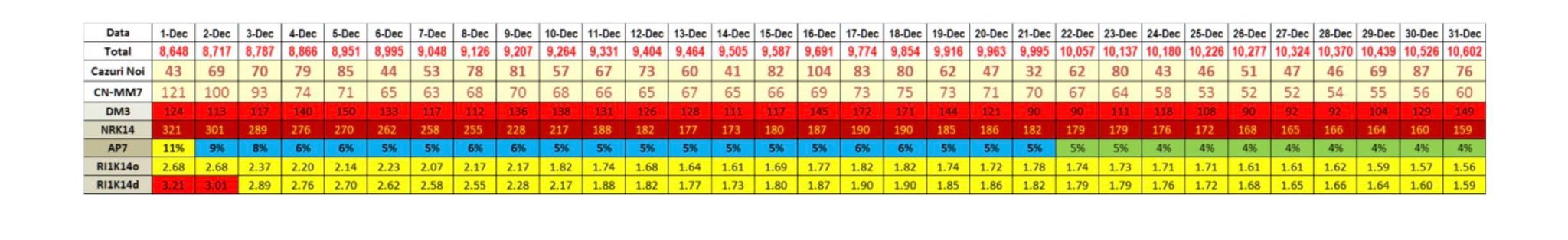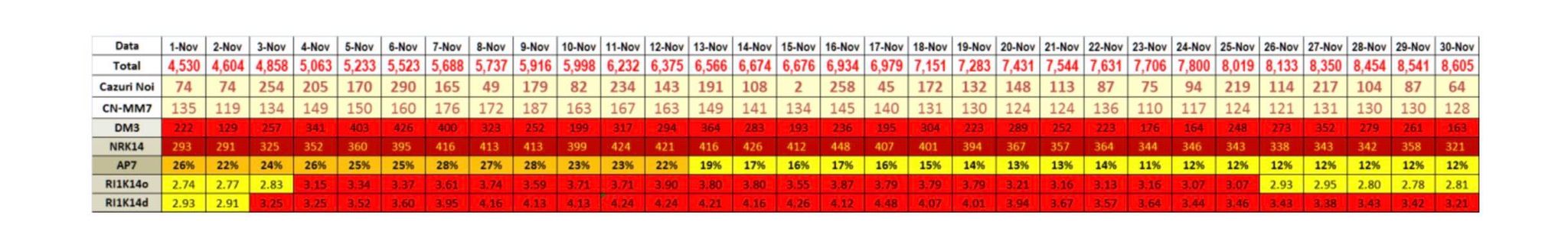 Evolutia numarului de cazuri si a principalilor indicatori in luna noiemebrie si decembrie se gaseste in urmatoarele tabele: