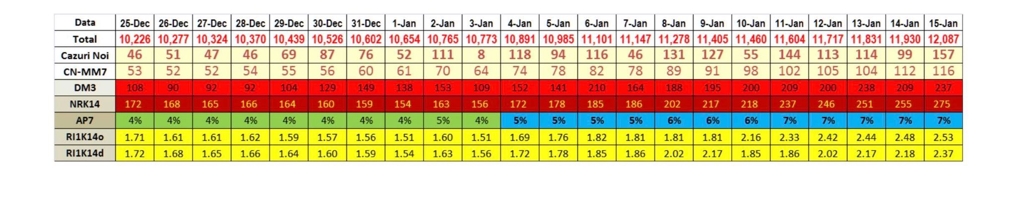 RI1K14-COVID19 (rata de incidenta la 1,000) reprezinta numarul cumulat de cazuri noi din ultimele 14 zile la 1,000 locuitori si este un indicator absolut. RI1K14 – estimare absoluta pe tremen lung la 14 zile. RI1K14o = valori oficiale; RI1K14d = valori standard raportate la populatia dominciliata”, se arată în explicațiile lui Octavian Jurma în exclusivitate pentru DirectMM.ro.