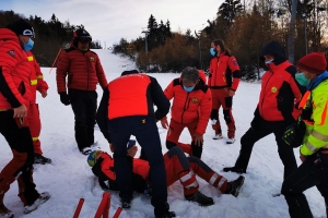 Exercițiu în teren: Salvamontiștii maramureșeni au desfășurat o pregătire complexă pe pârtie, la Cavnic (FOTO)