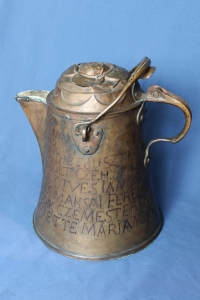 Pe cană de jur împrejur sunt inscripţionate în limba maghiară emblemele breslelor şi textul: 1884 jk. A.F.BANFY TIMAR SZGYARTO ES SUSZTER EGYESULT CZEH SZAMARA OTVES JANOS, ELSO ES MAKSAI FERENCZ MASODIK CZEMESTEREI ALATT KESZITETTE MARIANYK JANOS „CZE MER” ( (”PENTRU BRESLELE UNITE, ALE TĂBĂCARILOR, CURELARILOR ȘI A PANTOFARILOR/ȘUȘTERILOR SUB CONDUCEREA MEȘTERILOR ÖTVES IÁNOS PRIMUL ȘI MAKSAI FERENCZ AL DOILEA, AM REALIZAT ACEASTA, EU MARIANYIK IÁNOS”)
