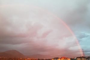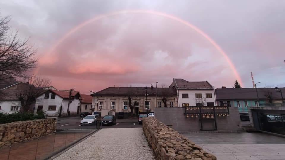 În zona Baia Mare a răsărit curcubeul, acesta fiind văzut inclusiv „de peste deal” din zona Ocna Șugatag. Totodată, cerul a devenit variabil la apus, generând o coloristică a cerului mai puțin specifică sezonului rece. În tot acest timp, la munte a nins, vântul spulberând zăpada și viscolind ninsoarea.