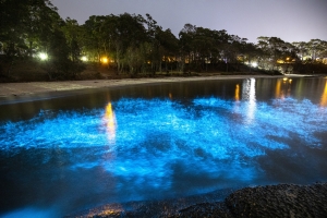 Imagini impresionante surprinse de un fotograf în Golful Jervis din Australia. Jordan Robin a fotografiat un fenomen rar: apa golfului strălucea datorită algelor bioluminiscente, răspândind o lumină albastră, notează digi24.ro.