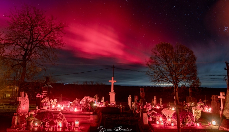 „Seara zilei de 5 noiembrie 2023 a adus pe cerul nordic al României, dar și al altor țări din regiune, un spectacol frumos și foarte rar: aurora boreală. O erupție solară produsă în urmă cu două zile a trimis spre Pământ un nor de particule încărcate electric care, în urma interacțiunii cu câmpul magnetic al Pământului, a produs în atmosferă un frumos spectacol de lumini văzut până la latitudini nordice neobișnuit de mici. Da, aurorele se produc la latitudini mari, dar nu e imposibil ca, în anumite condiții, acestea să fie observate și din zone mai îndepărtate de zonele polare”, arată AstroInfo.