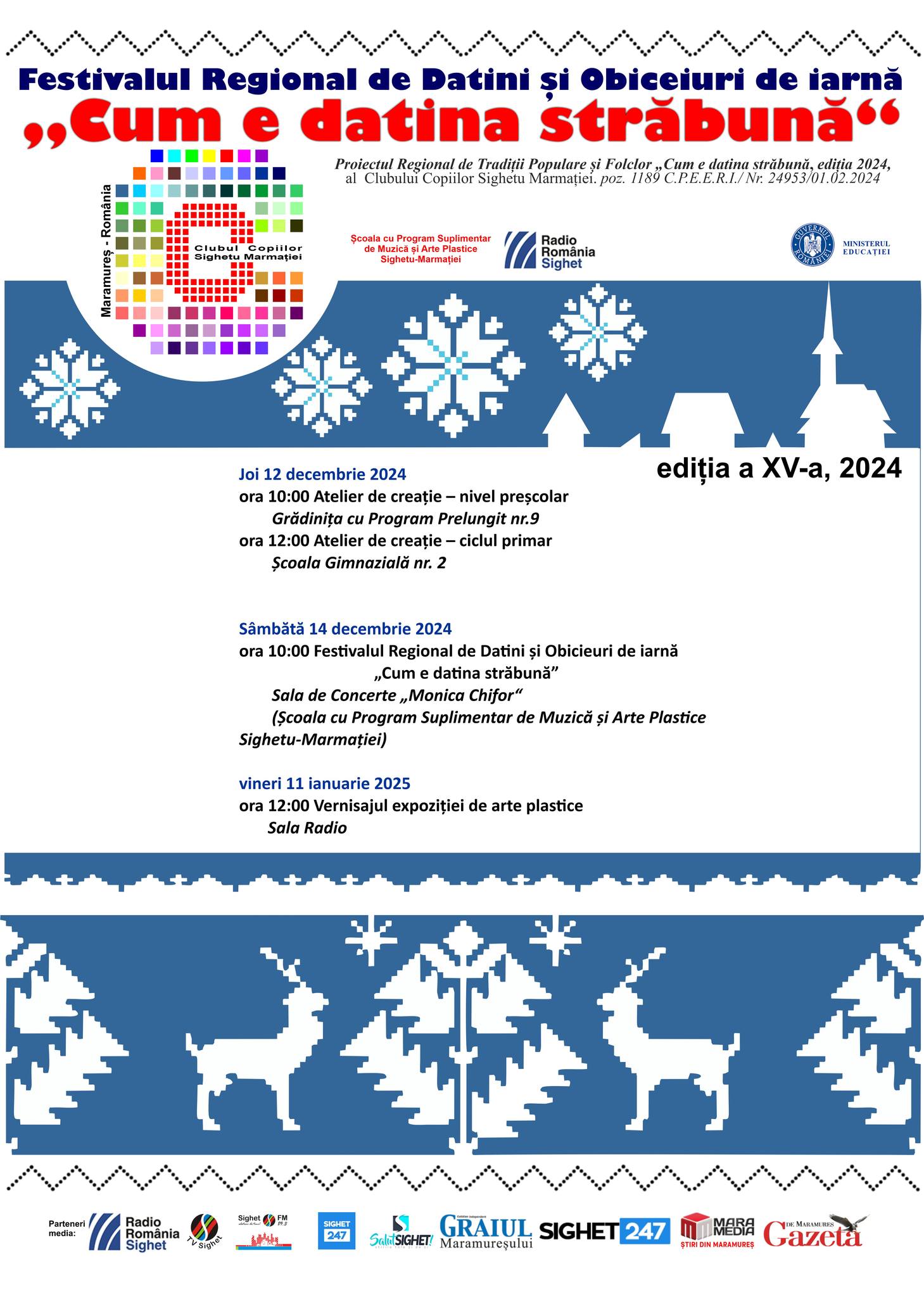 În perioada următoare, la Sighetu Marmației se va desfășura cea de-a XV-a ediție a Festivalului regional de datini și obiceiuri de iarnă „Cum e datina străbună”.