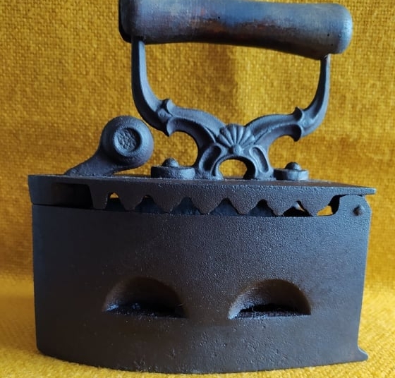 Este vorba despre fierul de călcat cu cărbuni (sfârșitul secolului XVIII – XIX). Istoria fierului de călcat începe cu grecii care au utilizat un fier de călcat cu role pentru a-și creea pliurile la robe, mai apoi romanii îndreptau țesăturile prin batere cu un lemn plat. Chinezii utilizau o tavă de metal umplută cu cărbuni pentru a presa hainele.