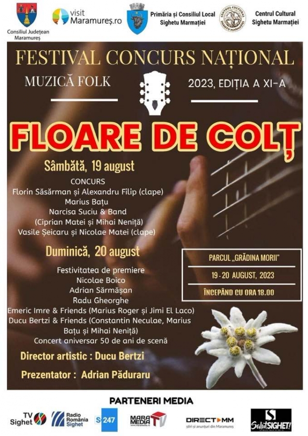 În perioada 19-20 august, de la ora 18.00, în Parcul „Grădina Morii” din Sighetu Marmației va avea loc a XI-a ediție a Festivalului Concurs Național „Floare de colț”.