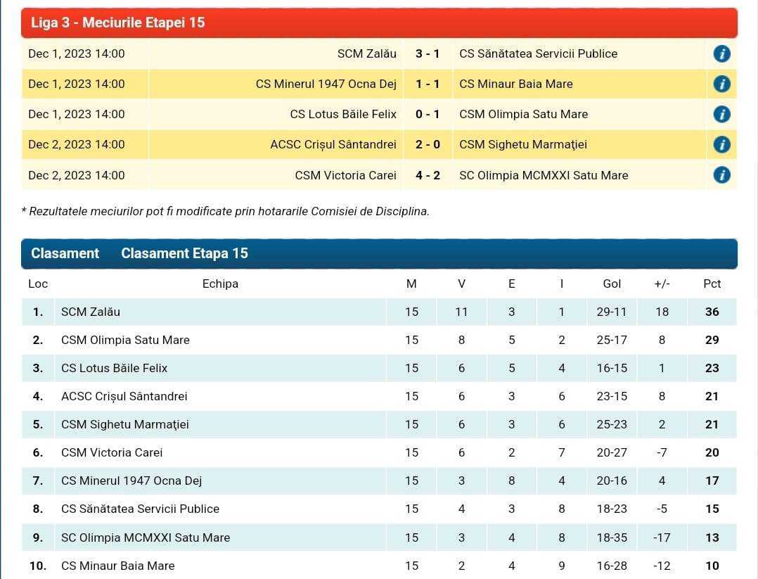 Ca atare, în prezent, echipa sigheteană se află pe locul 5, la egalitate de puncte, 21, cu echipa care a învins-o acum, făcând rocada în clasament.