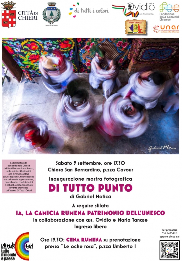Expoziție în colaborare cu Primăria Chieri, Asociația Ovidio, Asociația Culturală Maria Tănase, Fondazione della Comunita Chierese, Di Tutti i Colori, UNAR