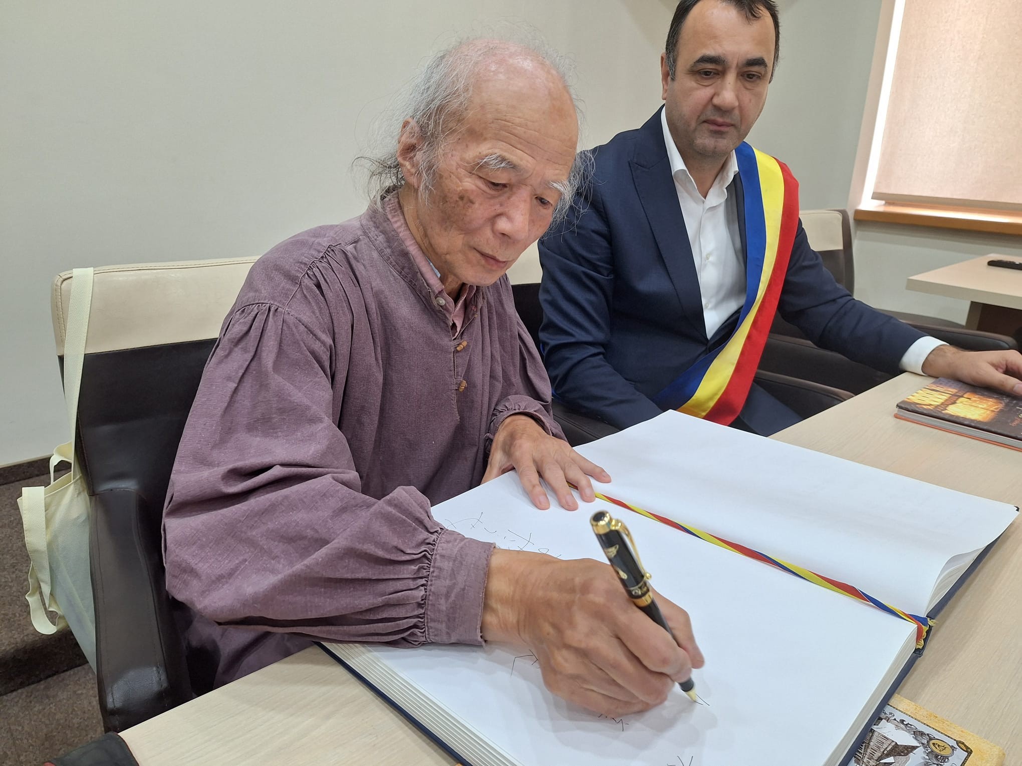 „Astăzi 19 septembrie 2025 la primăria Sighetu Marmației am avut bucuria de a primi vizita distinsului fotograf japonez, însoțit de soția sa, onorabil intelectual al Japoniei, ocazie cu care i-am înmânat oficial DIPLOMA DE CETĂȚEAN DE ONOARE.
