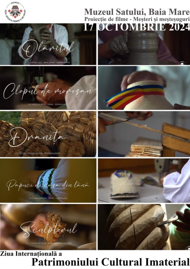 „Sărbătorim și noi această zi importantă în Muzeul Satului Baia Mare, oferindu-vă posibilitatea de a viziona filme care prezină meșteri și meșteșuguri locale din Maramureș: olărit, confecționarea draniței, a clopurilor tradiționale, a papucilor din lână sau faimoasa sculptură în lemn.