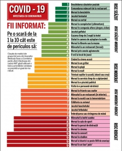 Un grafic realizat de Asociația Medicală din Texas ierarhizează activitățile obișnuite ale oamenilor în funcție de riscul la care acestea îi expun la infectarea cu coronavirus. Astfel, cel mai puțin periculos este să ieși din casă până la cutia poștală, la polul opus aflându-se mersul la bar