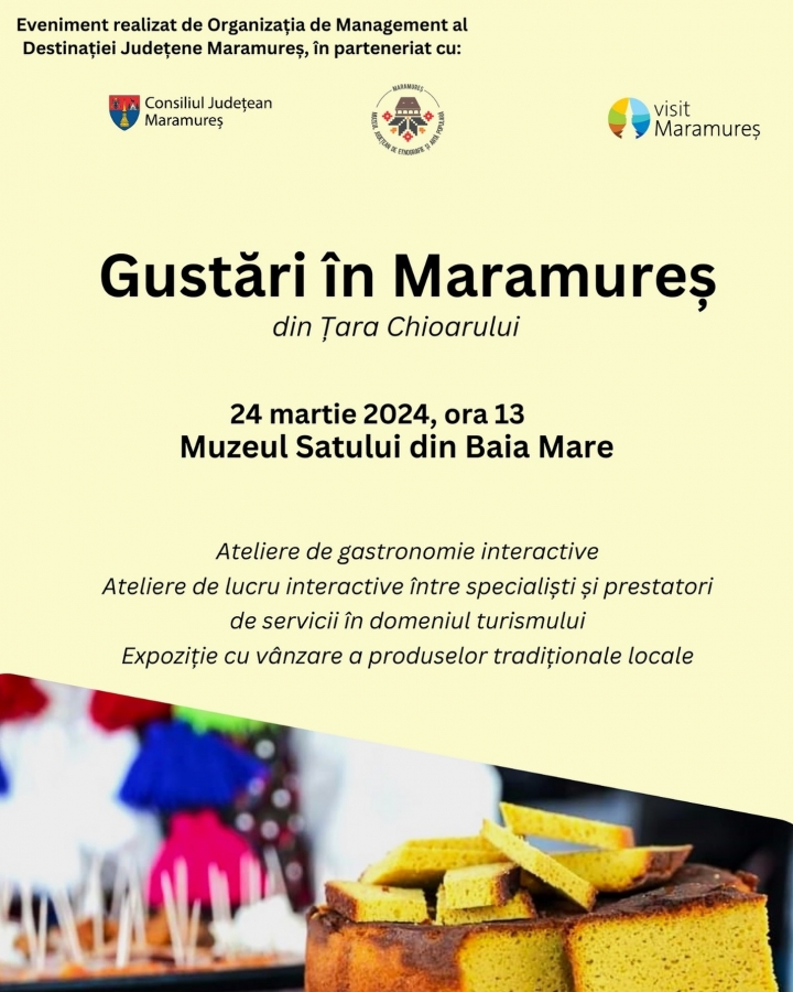 Duminică, 24 martie, de la 13.00, la Muzeul Satului din Baia Mare va avea loc evenimentul „Gustări în Maramureș din Țara Chioarului”.