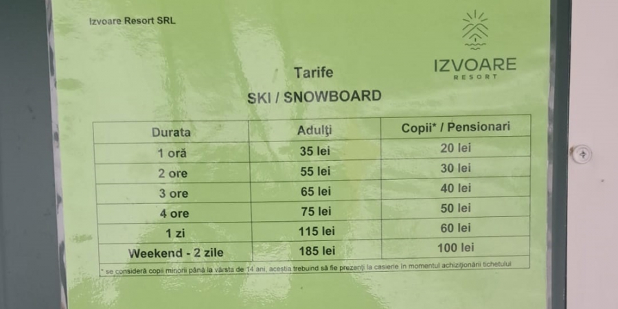 „Suntem extrem de încântați de cum arată pârtia noastră și abia așteptăm să ne vedem! Starea acesteia este perfectă, avem o grosime medie de 50-60 centimetri. E zăpadă artificială, dar acum s-a pus și un strat de zăpadă naturală de vreo 15-20 de centimetri. Nu este aglomerat, e chiar ok. Avem și snowmobile pentru cine nu dorește să schieze. Funcționează și restaurantul”, transmit reprezentanții Izvoare Resort.