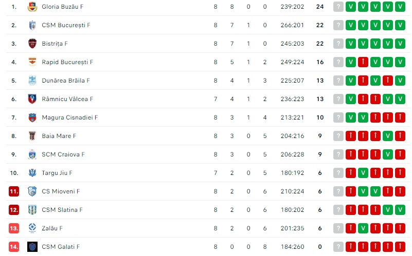 În prezent, pe podium se află Gloria Buzău, cu maximul de puncte (rezultat gonflat, acuză oamenii de handbal, cel mai recent rezultat atacat la FRH fiind cel cu Minaur, când s-au consemnat 35 de greșeli de arbitraj, dintre care 28 pro Buzău și 7 pro Minaur. Locul al doilea este CSM București, oricând o favorită, ca urmare a finanțării uriașe, iar pe locul al treilea se află Bistrița, unde evoluează și jucătoare plecate din Baia Mare. Așadar, urmează o partidă cu adevărat pe cinste!