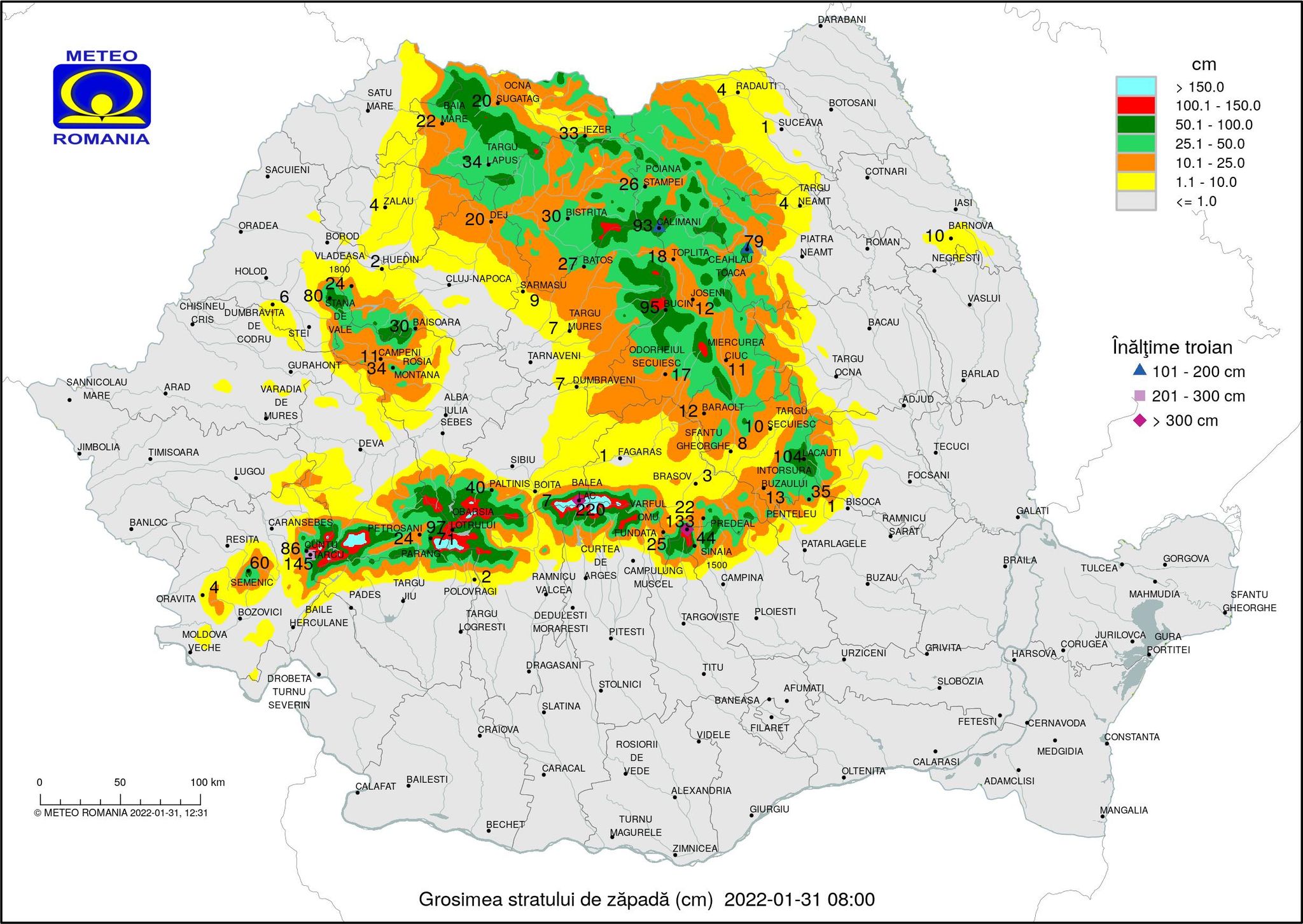 Pe DJ 83, adică vorbim despre șoseaua care face legătura dintre Valea Neagră și Izvoare, s-a produs o avalansa, in zona turbine. S-a intervenit cu utilaje, iar partea carosabila a fost eliberata de zapada, traficul rutier fiind reluat in zona.. Echipe de la Electrica lucreaza pentru remedierea avariilor de la punctele de transformare din zona Lapus. Stratul de zapada masura pana la 67 cm la Cavnic, 61 cm in Pasul Gutai, 60 cm la Luhei, 55 cm in Baia Borsa, 50 cm la Baiut, 45 cm in Poiana Borsa, 34 cm la Lapus, 33 cm la statia meteo Iezer, 22 cm in Baia Mare, 20 cm la Ocna Sugatag. Debitele si nivelurile cursurilor de apa au fost variabile. Gheata este prezenta la malurile raurilor Tisa, Viseu, Vaser, Cisla, Ruscova, Iza, Mara, Cosau, Lapus si Cavnic. Pod de gheata se gaseste pe cursul raului Mara (apa curge pe sub podul de gheata). Curg sloiuri de gheata pe raurile Suciu si Somes.