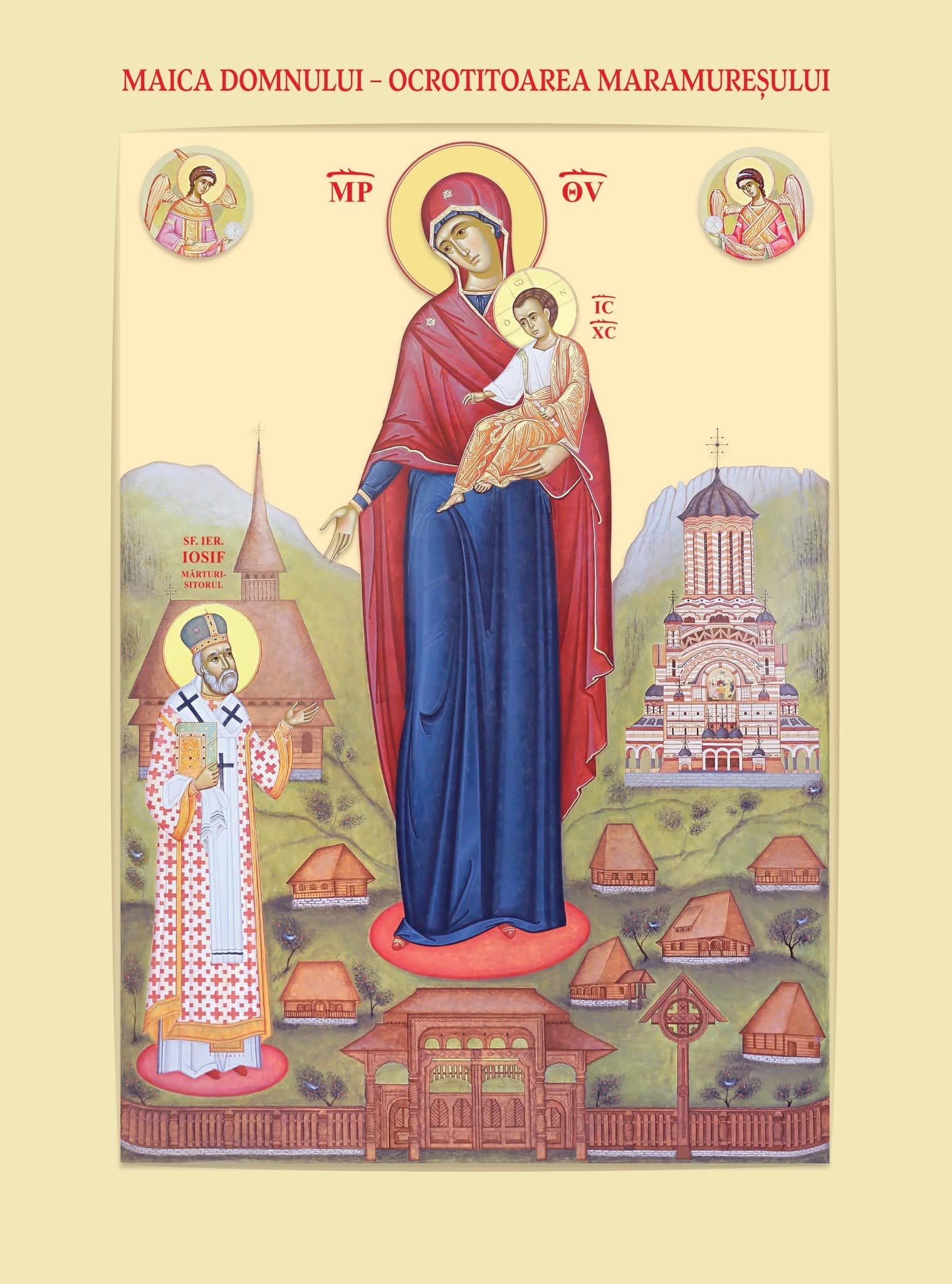 Icoana Maicii Domnului – Ocrotitoarea Maramureșului a fost realizată de pictorul bisericesc Gabriel Ștefan Solomon, lector la Facultatea de Teologie Ortodoxă din Cluj-Napoca.
