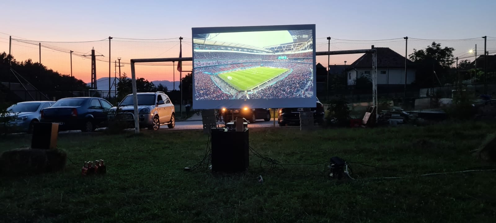 O idee absolut minunată a fost pusă în practică în comuna maramureșeană Groși. Iubitorii fotbalului au ocazia să vadă fazele superioare ale Campionatului European de Fotbal în aer liber pe stadion.