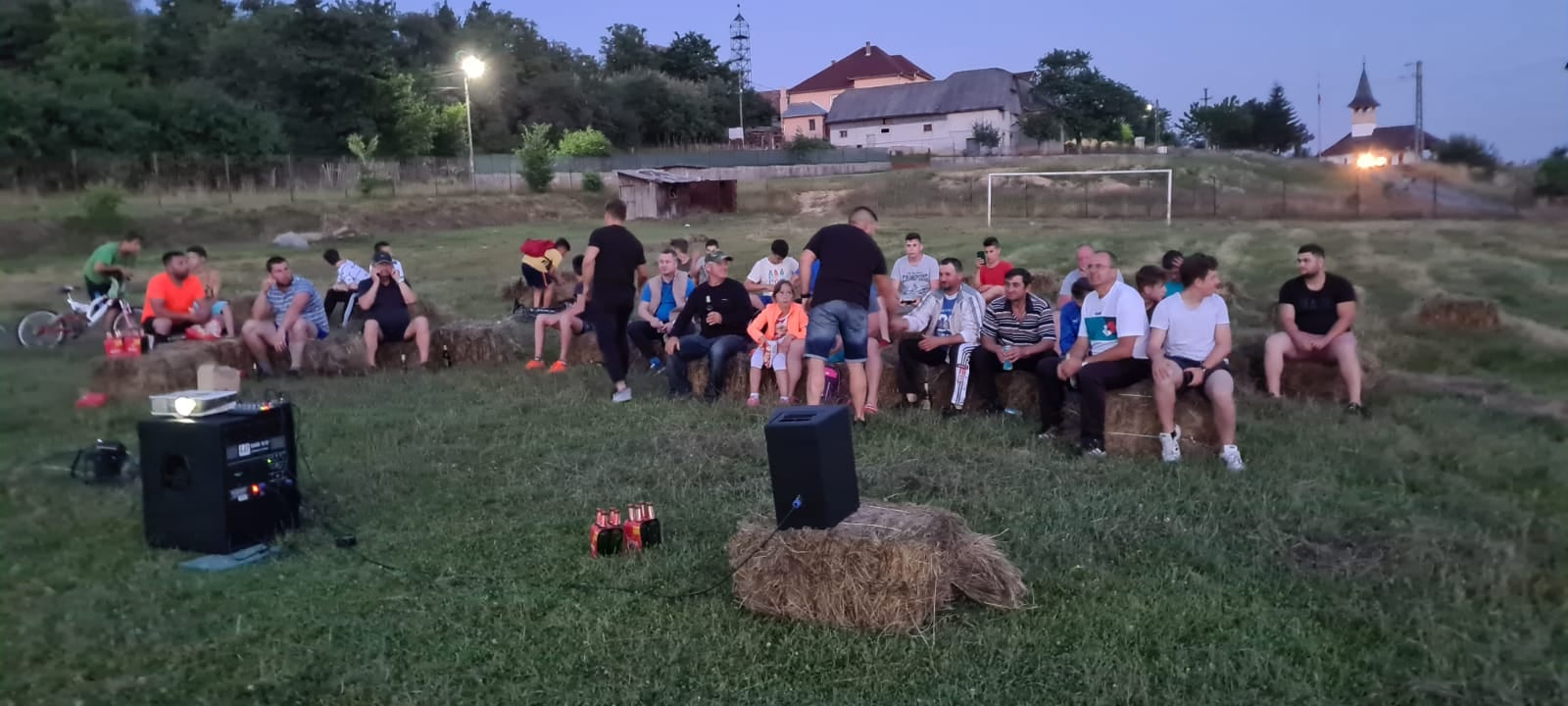 Mai exact, microbiștii din localitate pot urmări împreună, în comunitate, semifinalele competiției și, cel mai probabil, și finala, pe terenul de fotbal din comună. Prima seară a fost un succes, după cum se vede.