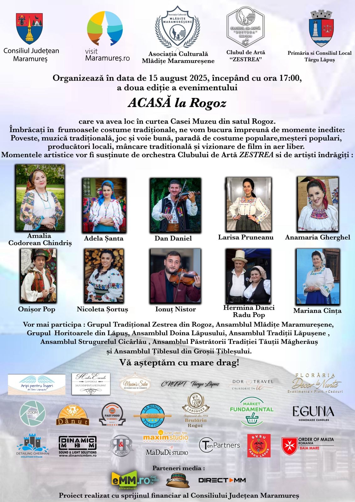 „În 15 august 2025, toate drumurile duc „ACASĂ la Rogoz”… acolo unde, începând cu ora 17:00, în curtea Casei Muzeu, va avea loc cea de a doua ediție a evenimentului, menit să aducă promovarea tradițiilor și a obiceiurilor din frumoasa Țară a Lăpușului, în atenția comunității locale și județene, a celor întorși acasă din străinătate și, bineînțeles, a numărului semnificativ de turiști prezenți la Mănăstirile din zonă cu ocazia Sărbătorii religioase „Adormirea Maicii Domnului”.