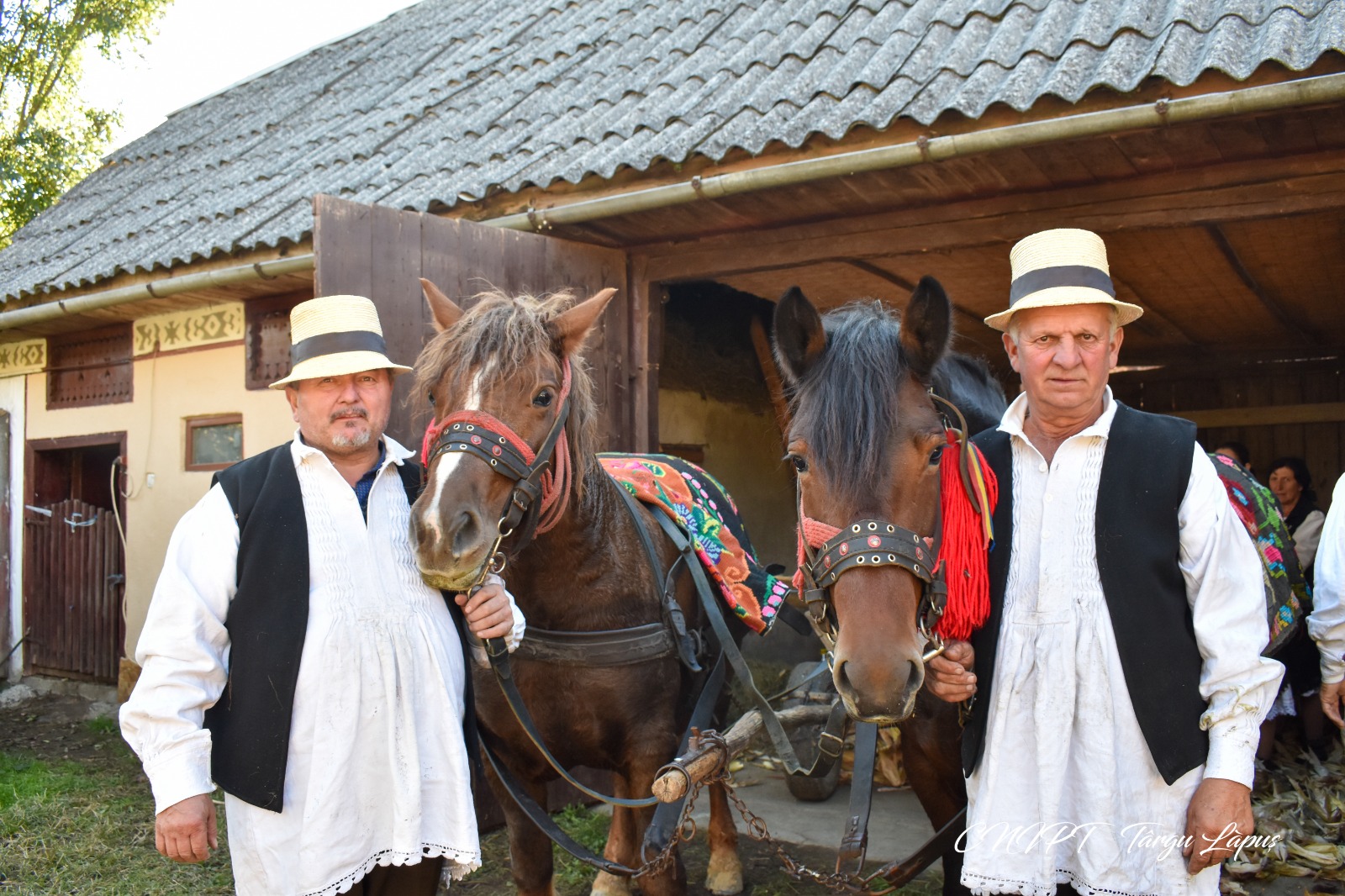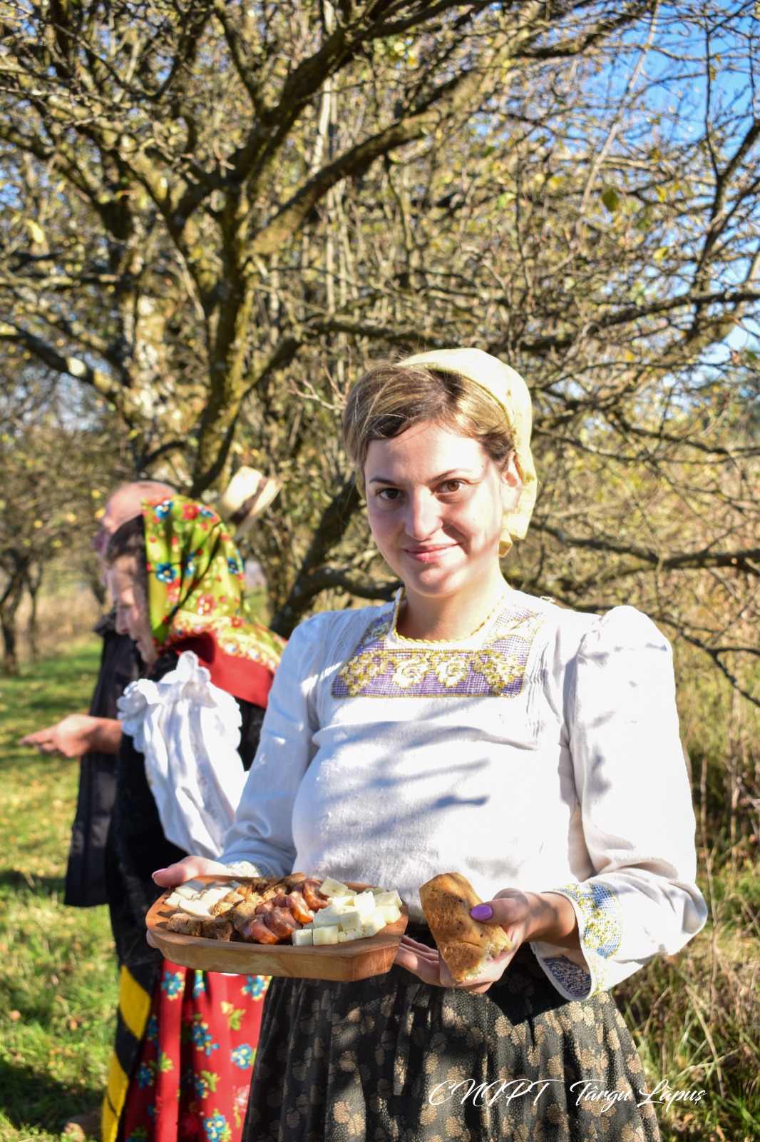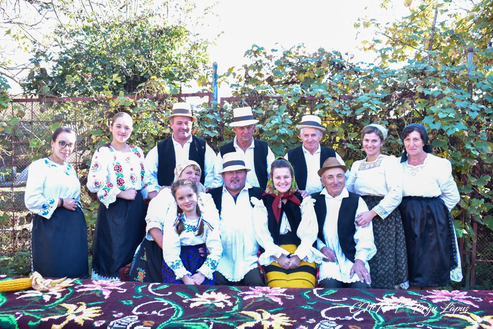 Îmbrăcați tradițional, participanții au muncit cu adevărat și cu mult spor, iar la final au fost ospătaţi de familia gazdă.