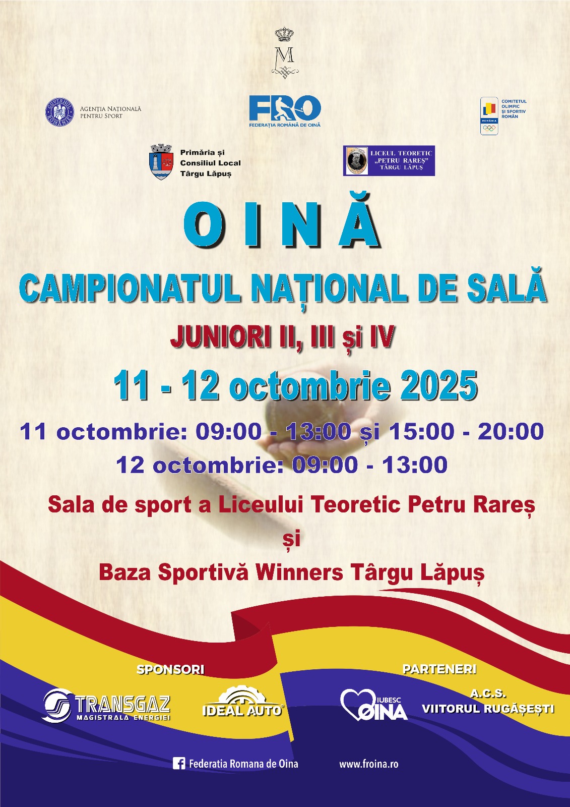 În perioada 11-12 octombrie, în Târgu Lăpuș va avea loc Campionatul Național de Oină în Sală Juniori II, III și IV.