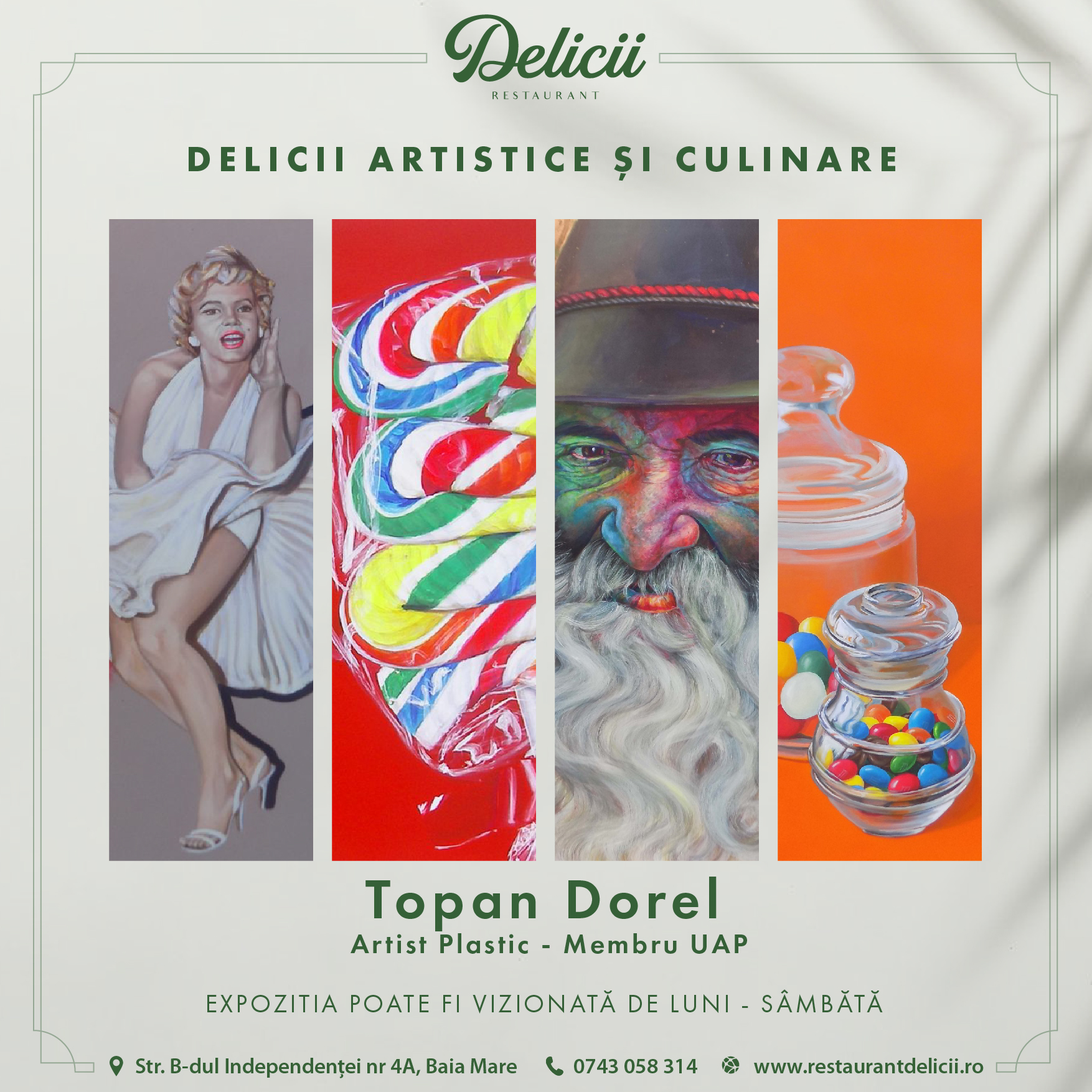 Luna aceasta, Restaurantul Delicii din Baia Mare (bd. Independenței, nr 4A, lângă Biblioteca Județeană) găzduiește expoziția artistului plastic Dorel Topan, membru UAP.