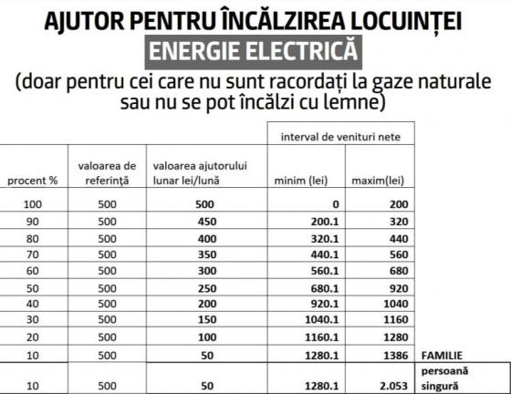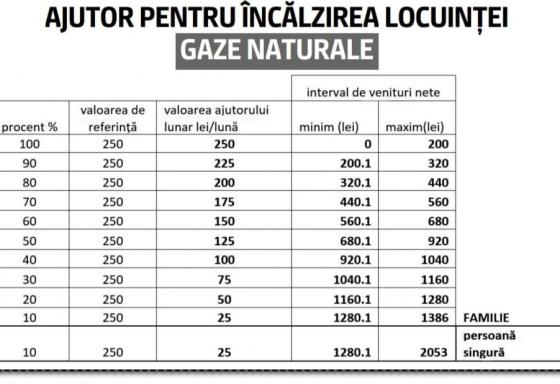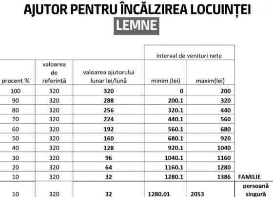 Ajutorul pentru încălzirea locuinței se acordă pentru un singur sistem utilizat pentru încălzirea locuinței, pe perioada sezonului rece, declarat de persoana singură, respectiv de un membru al familiei care are capacitate deplină de exercițiu al drepturilor civile, care devine titularul ajutorului, arată specialiștii. Ajutorul se acordă în funcție de venitul mediu net lunar pe membru de familie sau al persoanei singure, după caz, iar suma aferentă pentru compensarea procentuală se suportă din bugetul de stat. De acest sprijin vor putea beneficia băimărenii ale căror venituri nu depășesc plafonul maxim de 1.386 de lei /persoană în cazul familiilor, respectiv 2.053 de lei în cazul persoanelor singure și care solicită acordarea acestui ajutor până cel târziu la data de 20 noiembrie.