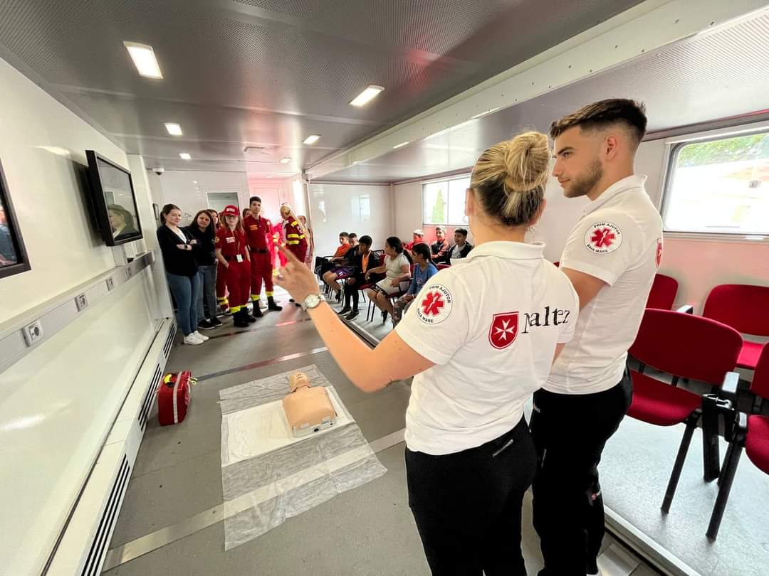 „Împreună suntem mai puternici”: Voluntarii maltezi maramureșeni au învățat primul ajutor pe toți copiii și părinții, sosiți la caravana siguranței