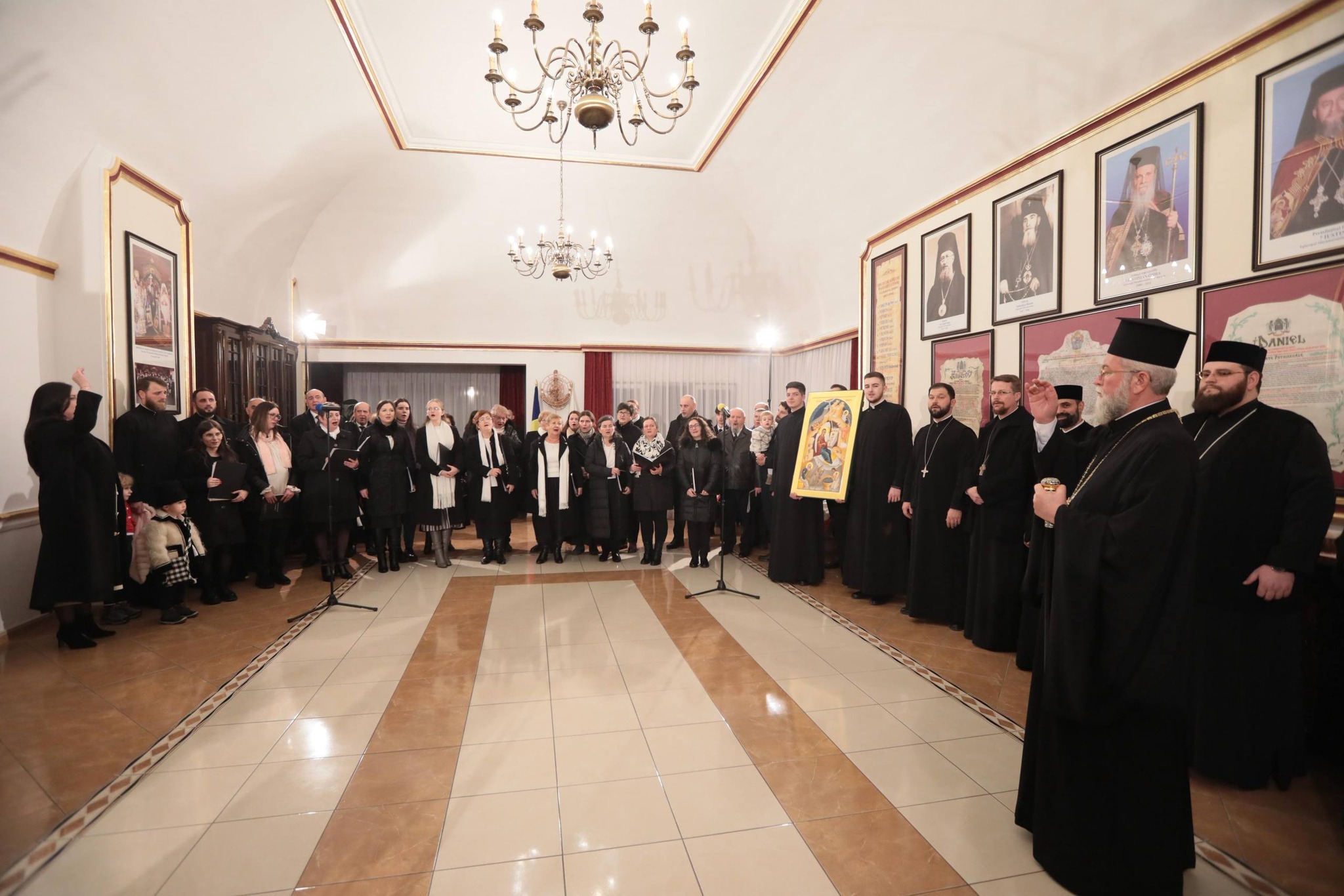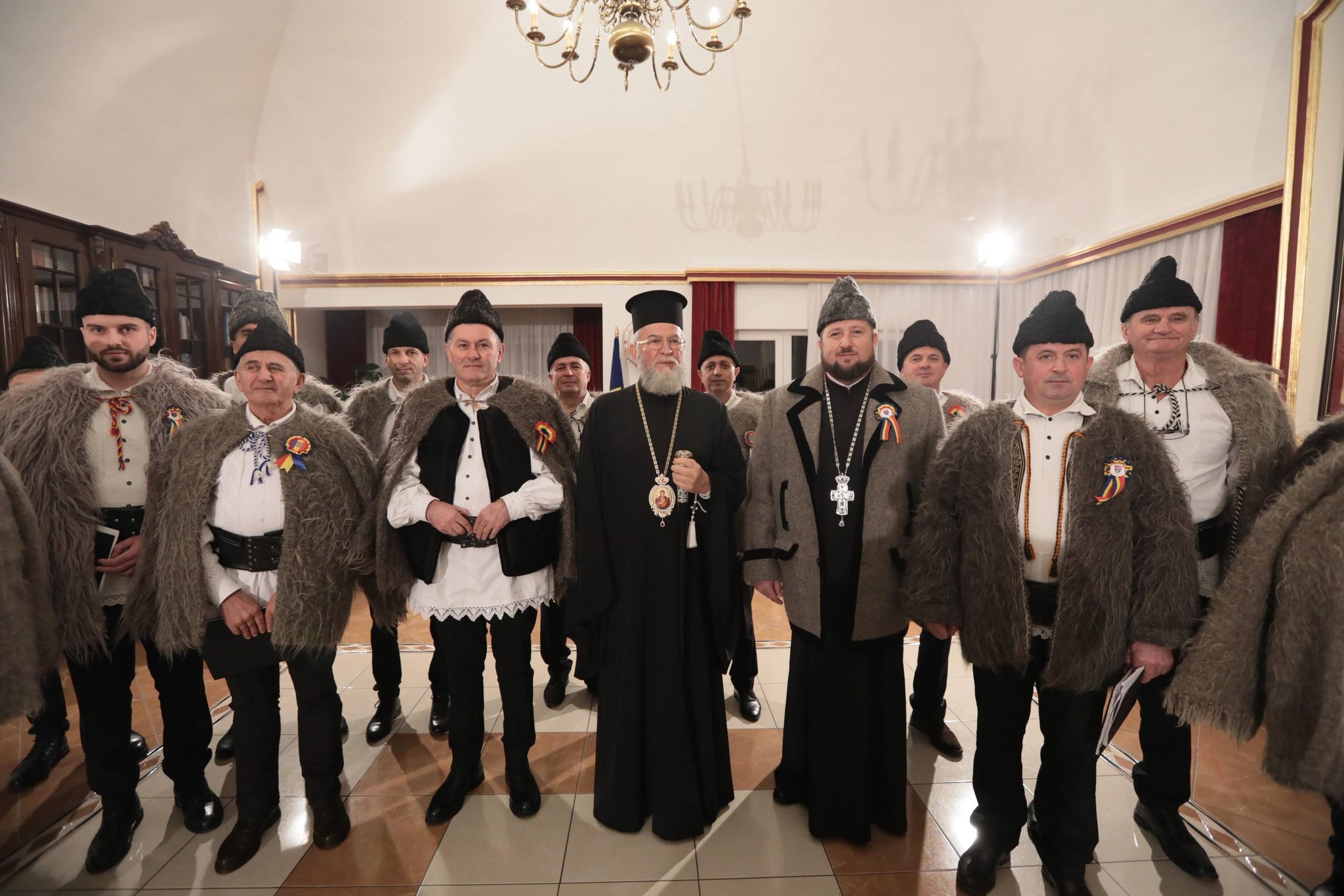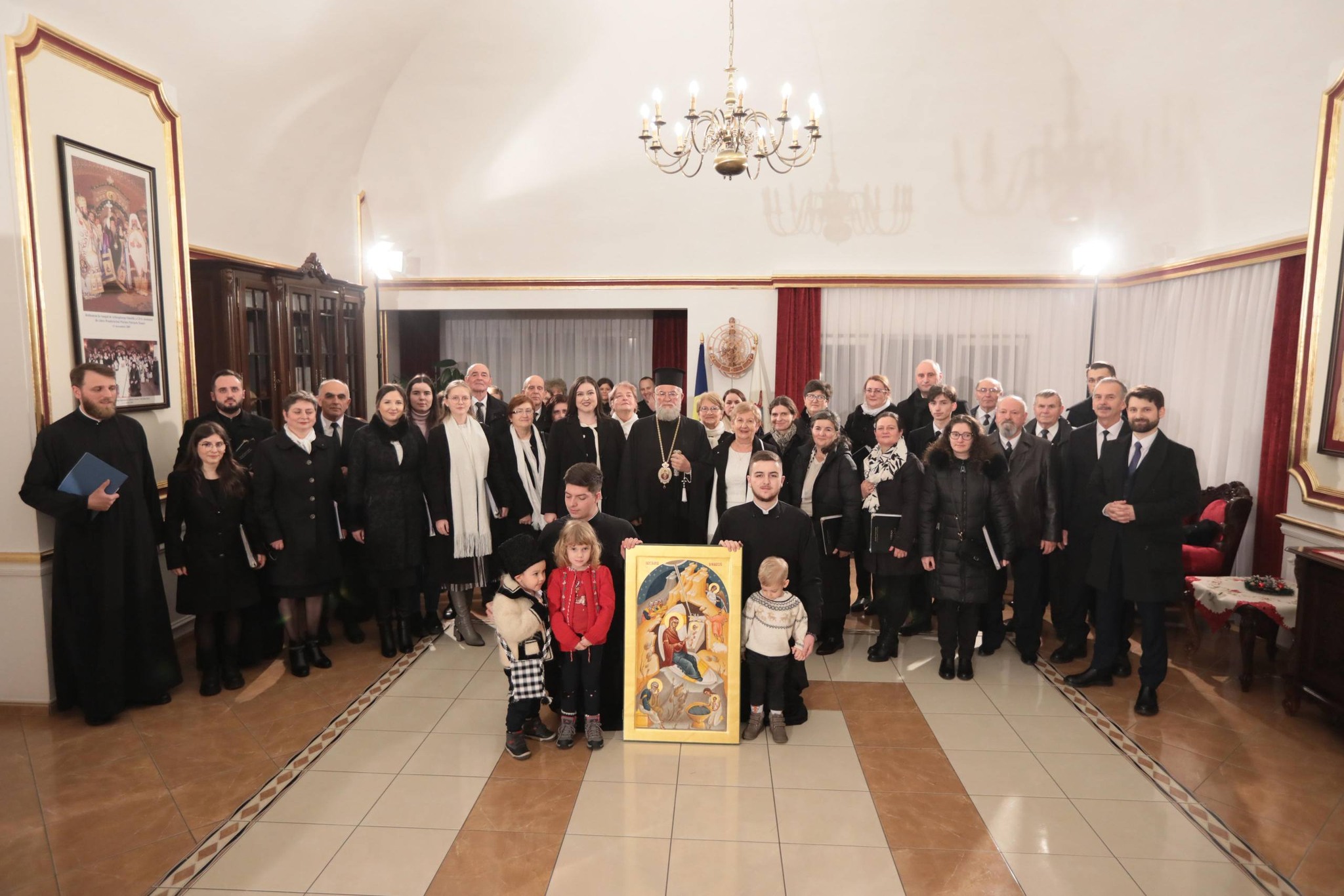 În continuare, Preasfinția Sa, a primit, în Sala festivă „Justinian Arhiepiscopul” mai multe grupuri de colindători. Au colindat următoarele coruri: