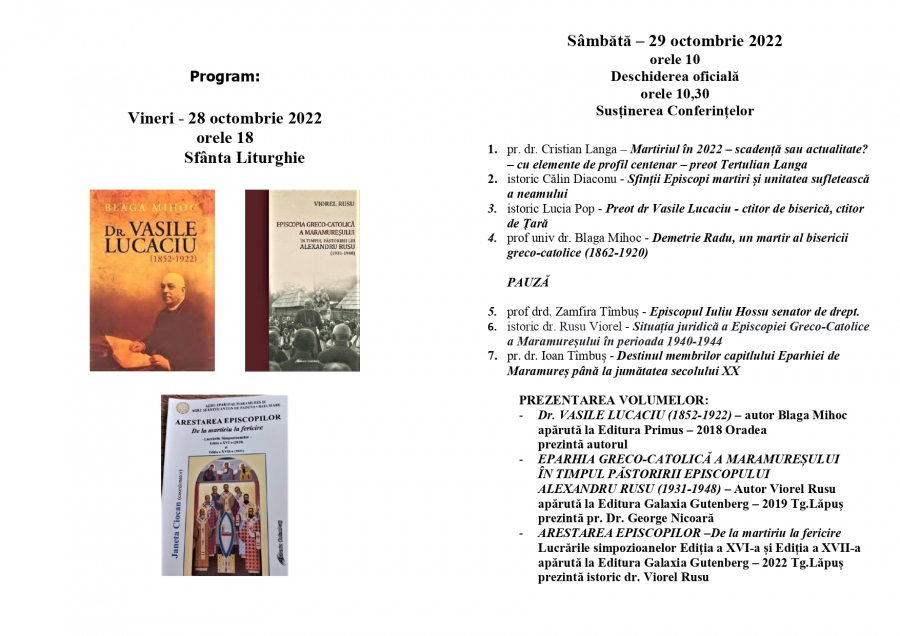 Sâmbătă, 29 octombrie, în Baia Mare se va desfășura Simpozionul „Arestarea episcopilor – de la martiriu la fericire”, ediția a XVIII-a.