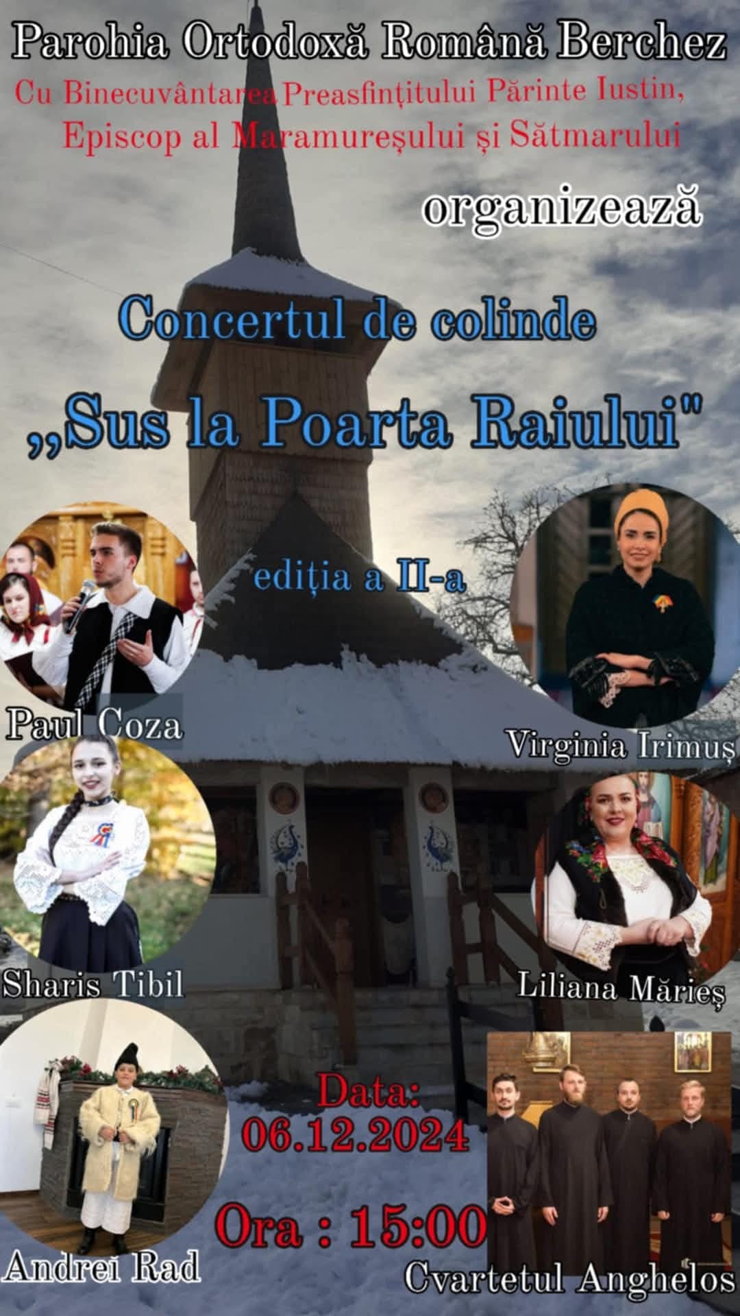 Vineri, 6 decembrie, de la ora 15.00, în Parohia Berchez se va desfășura concertul „Sus la Poarta Raiului”, ediția a II-a.
