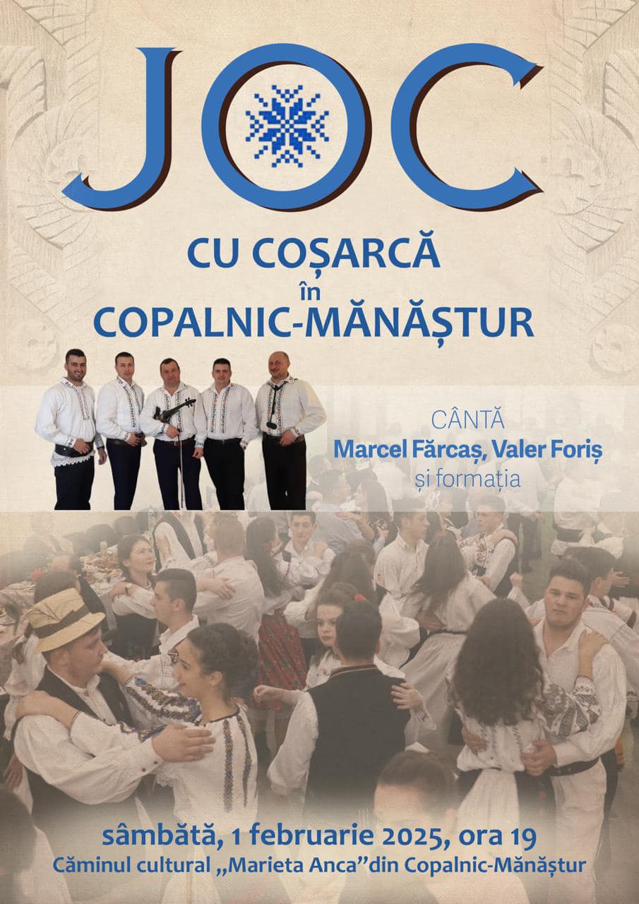 Sâmbătă, 1 februarie, de la ora 19.00, Căminul Cultural „Marieta Anca” din Copalnic Mănăștur va găzdui „Joc cu coșarcă”.