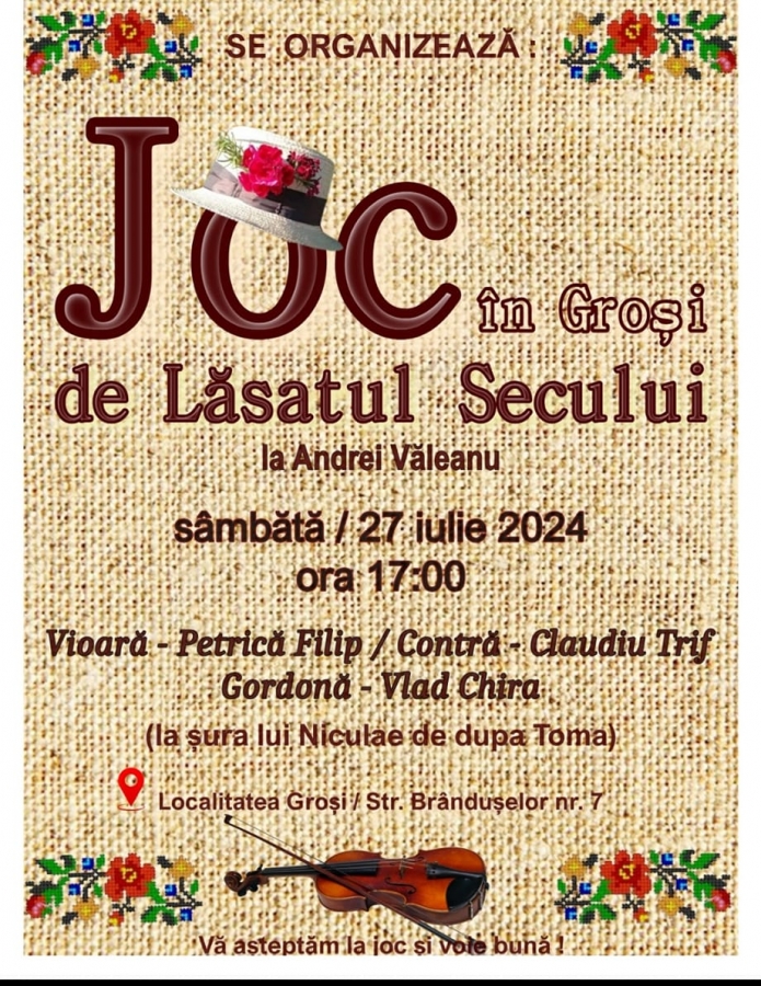 În 27 iulie, de la ora 17.00, în Groși se organizează un joc de lăsatul secului, având în vedere că apoi urmează Postul Adormirii Maicii Domnului.