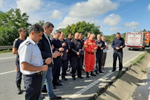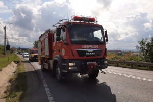 La km 157, pe Dura, o conducătoare auto a ignorat semnalele acustice și luminoase care avertizau că e vorba de o misiune de salvare și nu a tras pe dreapta. Șoferul de pe o autospecială a încercat să o evite prin depășire, dar când a revenit pe bandă, a ieșit puțin cu roțile din dreapta de pe șoseaua în pantă. Fiind încărcată cu apă, mașina a intrat în balans și s-a răsturnat, lovindu-se de stâlpii de iluminat public de pe marginea DE 58.
