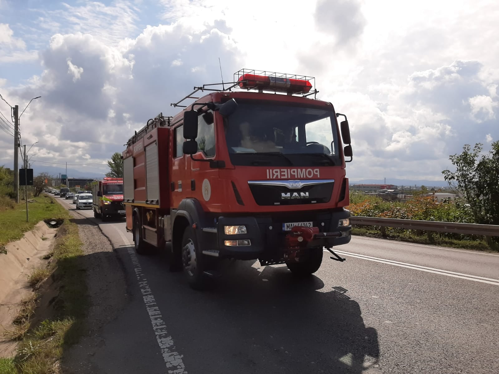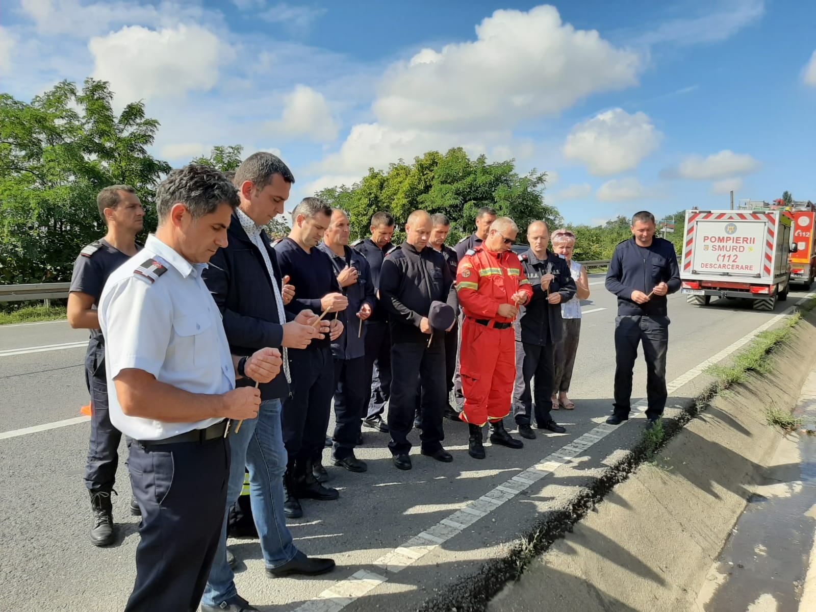 La km 157, pe Dura, o conducătoare auto a ignorat semnalele acustice și luminoase care avertizau că e vorba de o misiune de salvare și nu a tras pe dreapta. Șoferul de pe o autospecială a încercat să o evite prin depășire, dar când a revenit pe bandă, a ieșit puțin cu roțile din dreapta de pe șoseaua în pantă. Fiind încărcată cu apă, mașina a intrat în balans și s-a răsturnat, lovindu-se de stâlpii de iluminat public de pe marginea DE 58.