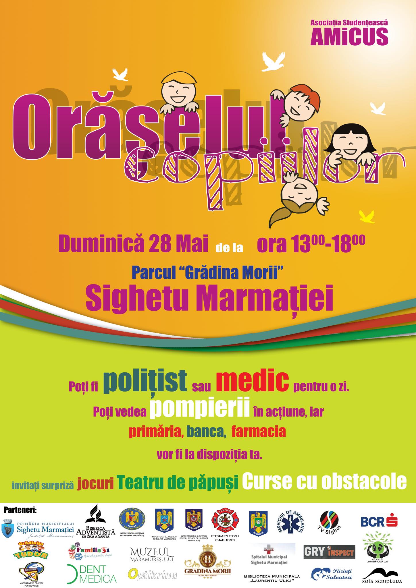 Se arată bucurie mare pentru cei mici, de 1 iunie! Asociația Studențească Amicus va organiza Orășelul Copiilor, în Parcul Grădina Morii din municipiul Sighetu Marmației.