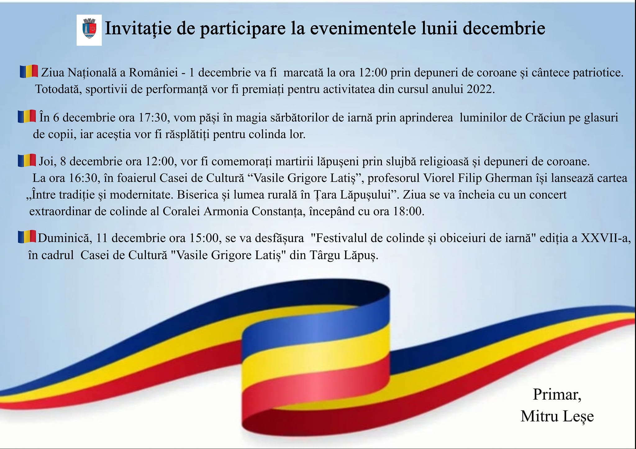 Anul acesta, comemorarea martirilor lăpușeni va avea loc în ziua de joi, 8 decembrie 2022, începând cu ora 12.00, prin slujbă religioasă și depuneri de conoare, evident, așa cum se face.