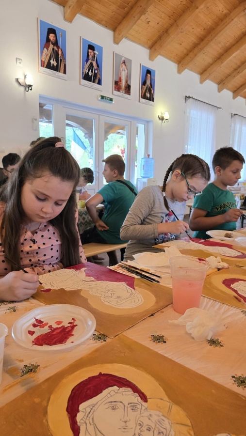 După inițierea în arta picturii, copiii au participat la Paraclisul Maicii Domnului, unde am înălțat împreună rugăciuni și am cântat pricesne specifice postului Adormirii Maicii Domnului.