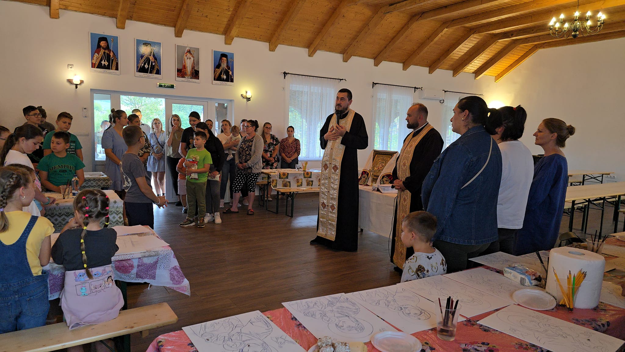După inițierea în arta picturii, copiii au participat la Paraclisul Maicii Domnului, unde am înălțat împreună rugăciuni și am cântat pricesne specifice postului Adormirii Maicii Domnului.