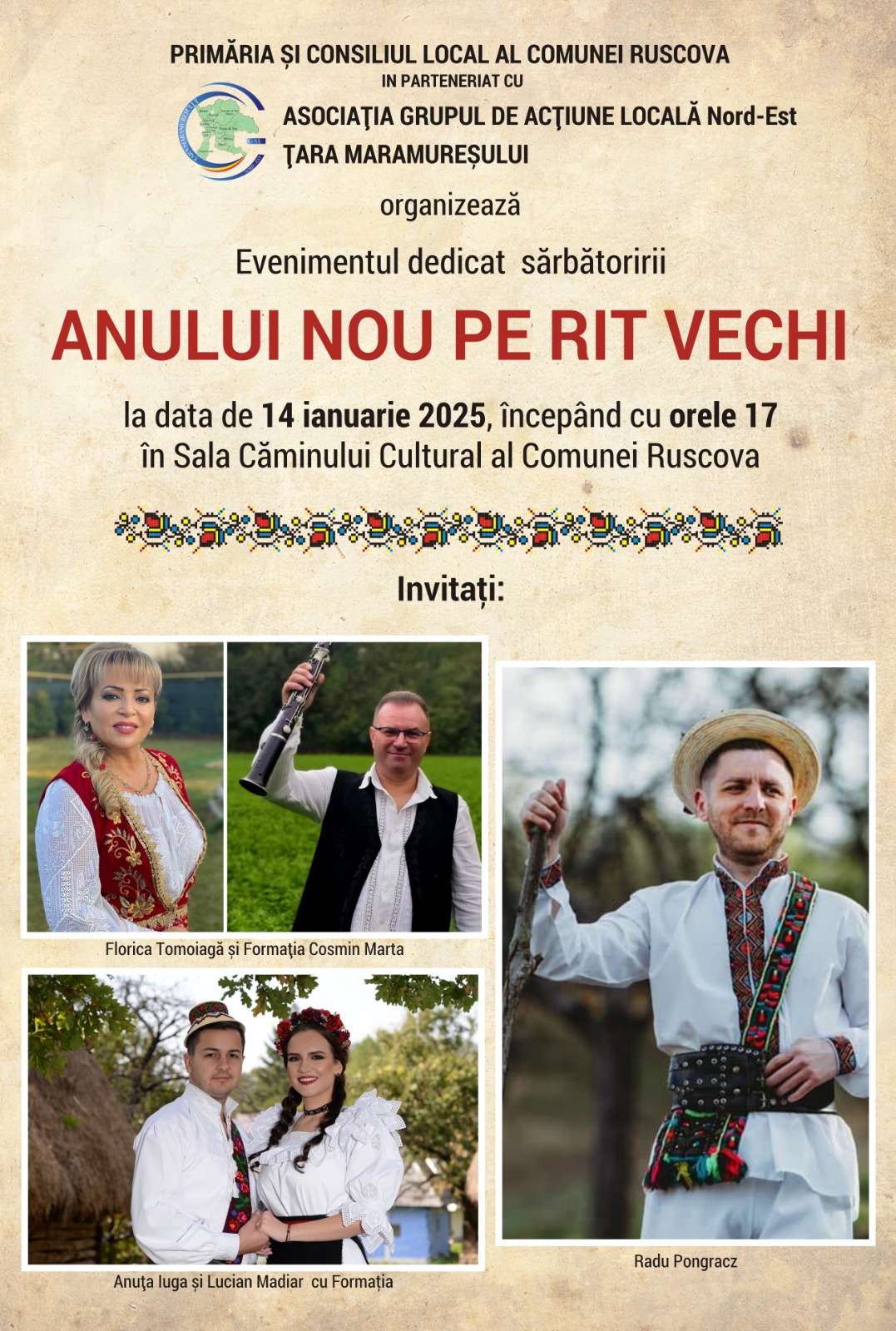 Marți, 14 ianuarie, de la ora 17.00, la Căminul Cultural din Ruscova se organizează „An Nou pe rit vechi”.